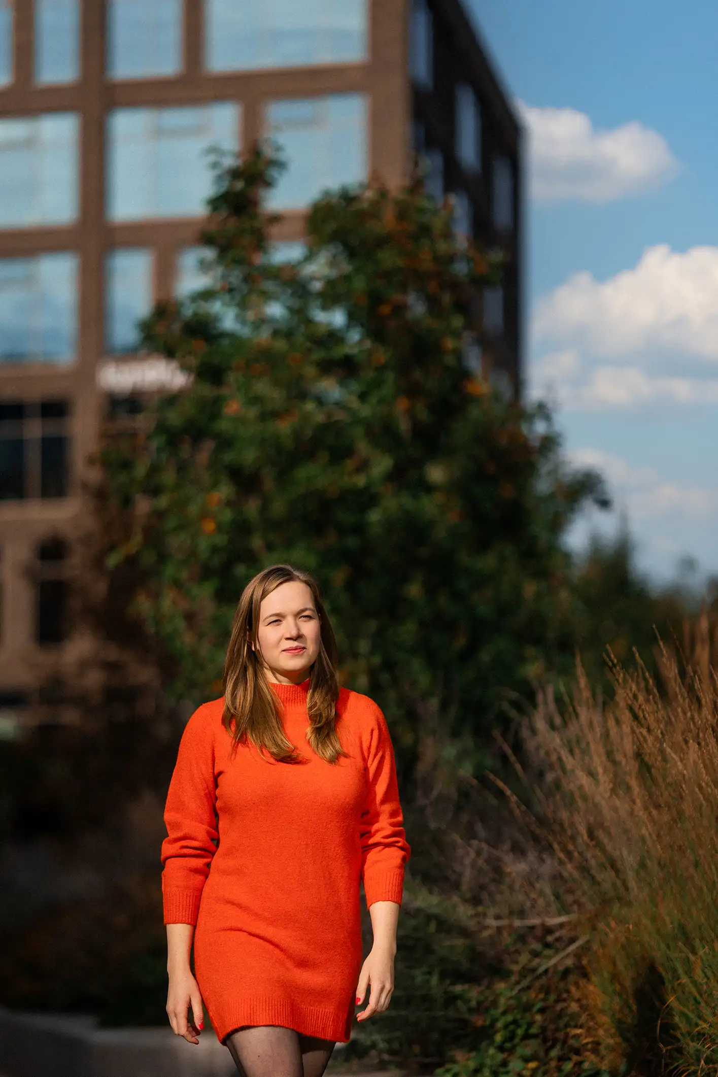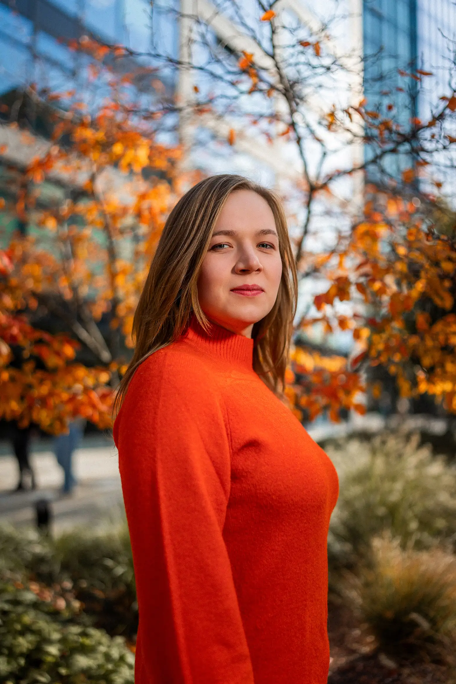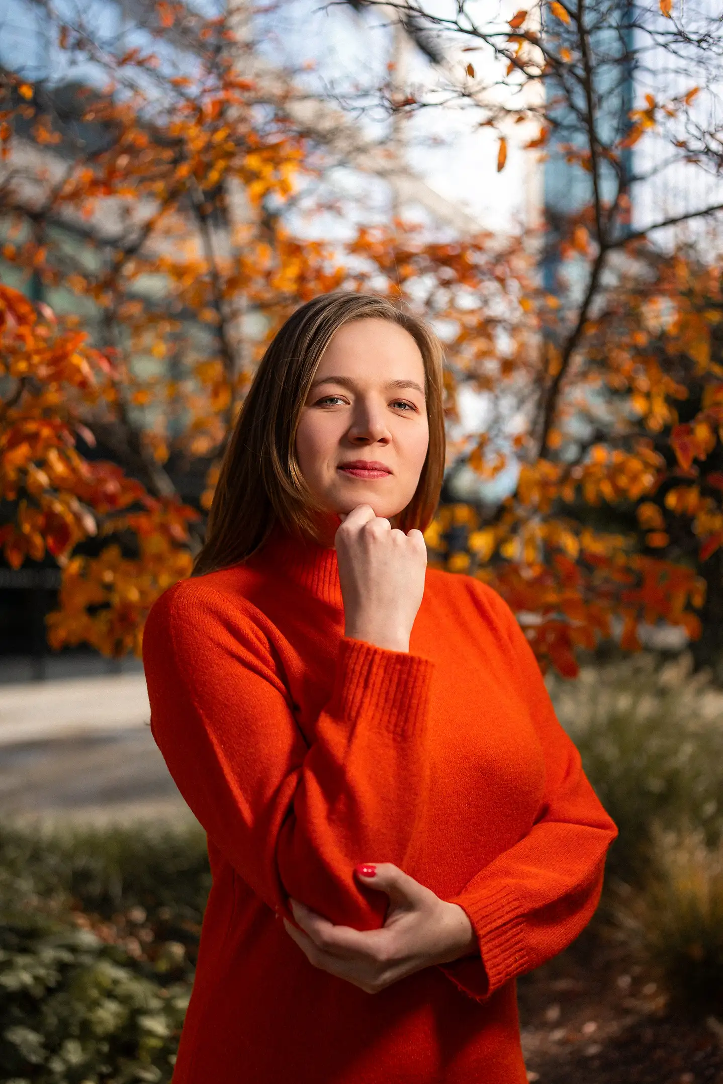 Katka chtěla business portréty v přírodním stylu. Využili jsme proto podzimní ulici Vlněna v Brně.