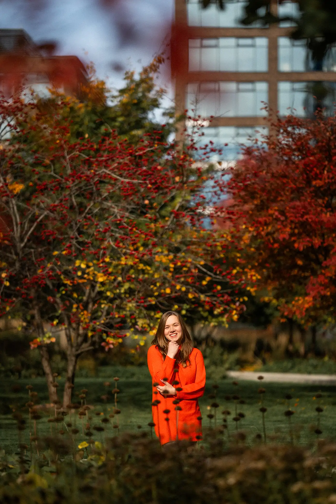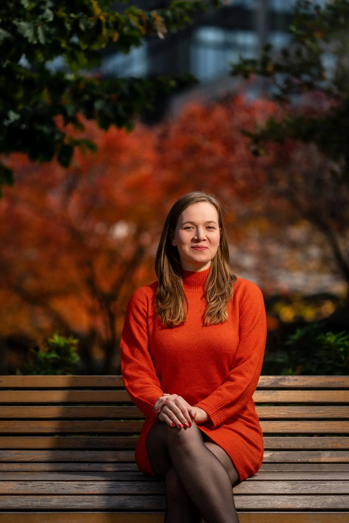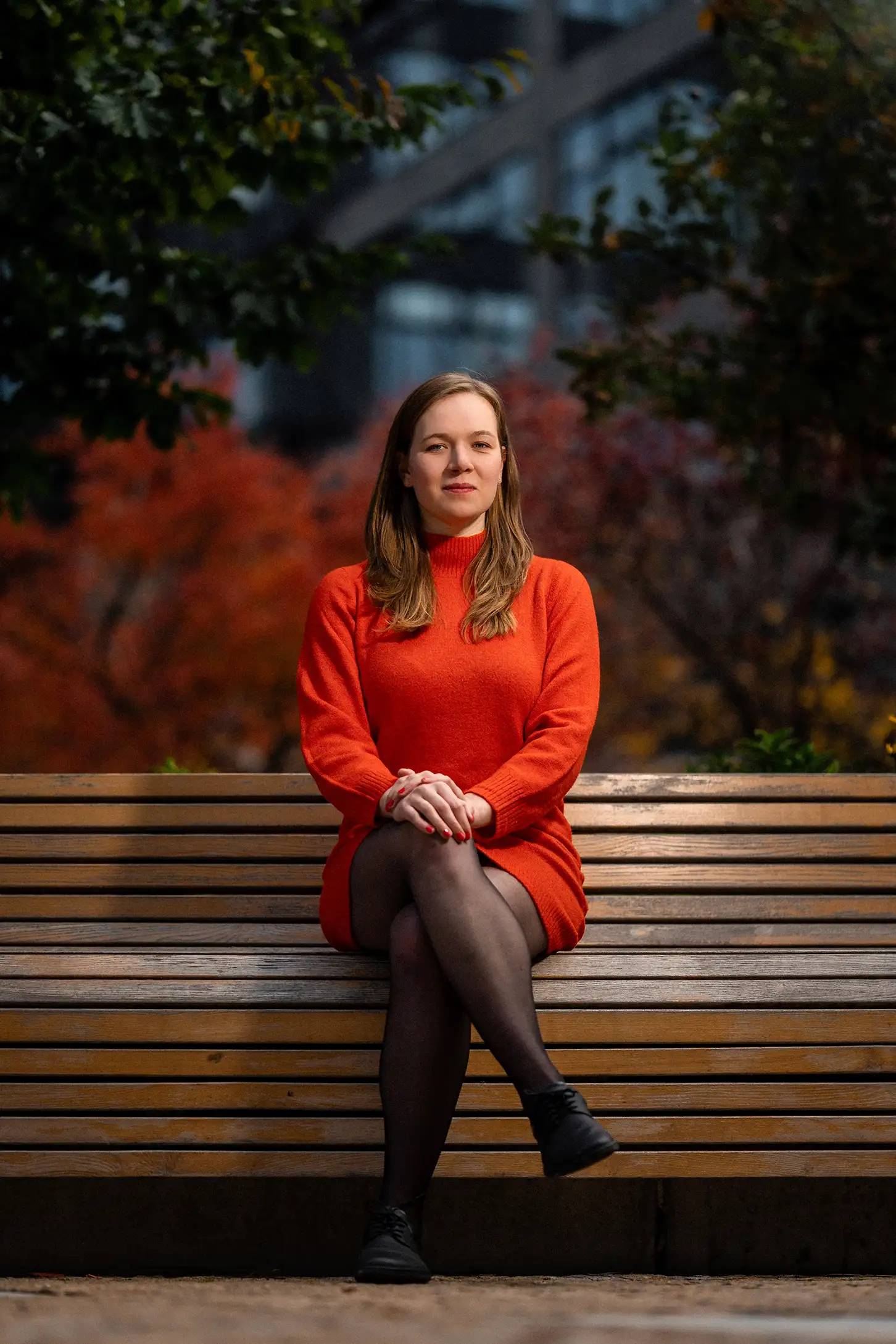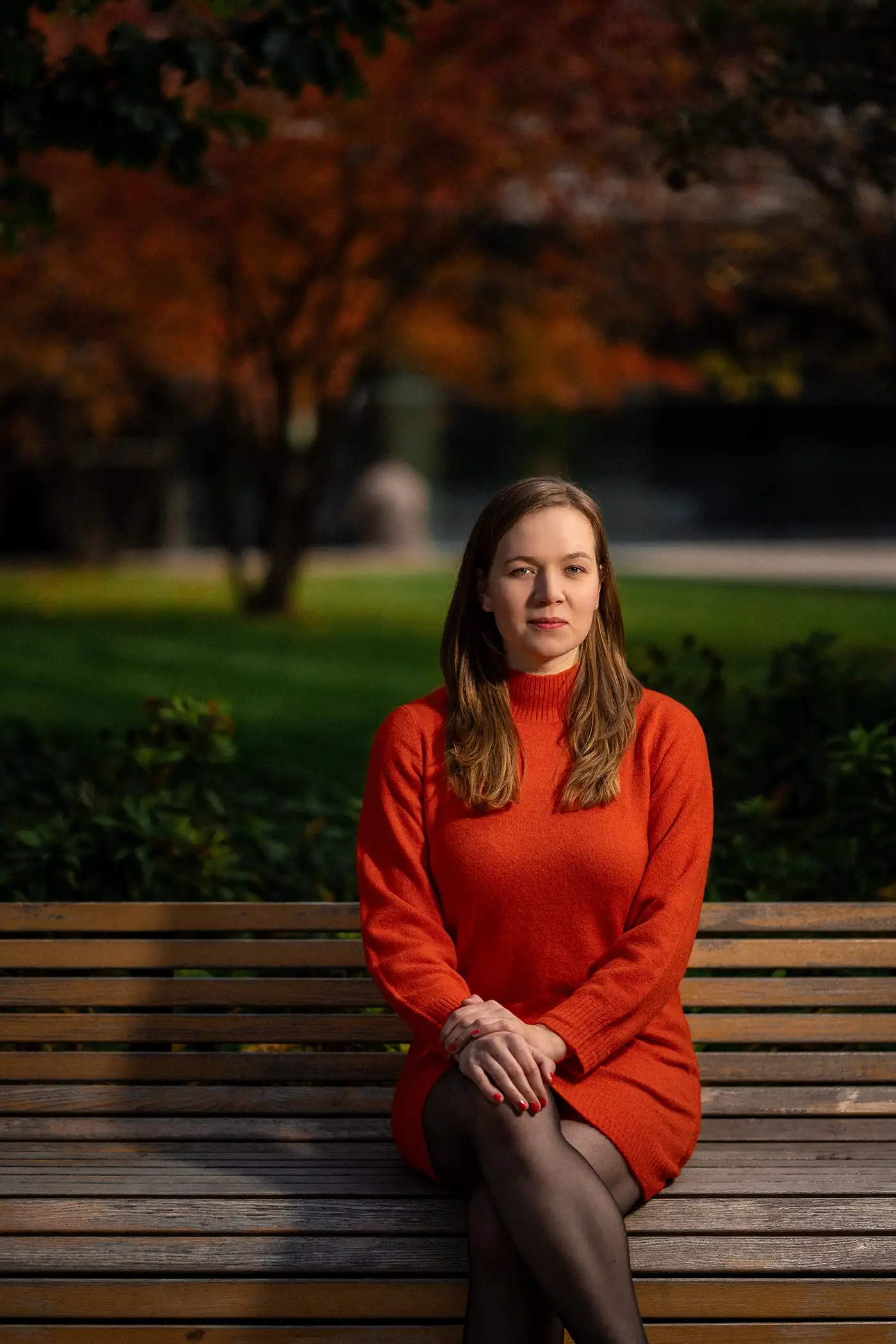 Katka chtěla business portréty v přírodním stylu. Využili jsme proto podzimní ulici Vlněna v Brně.